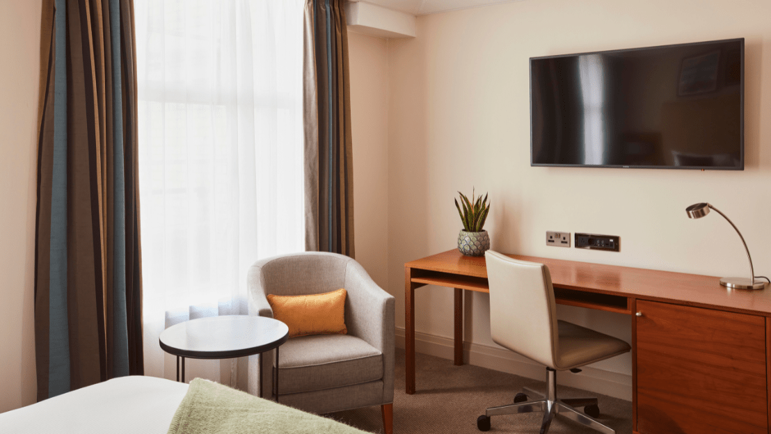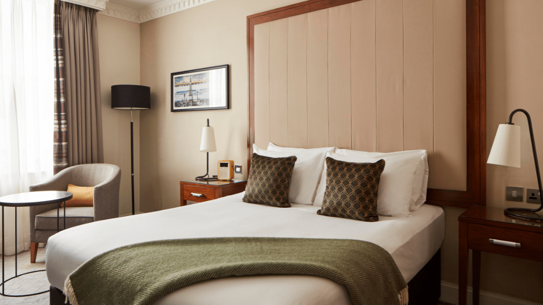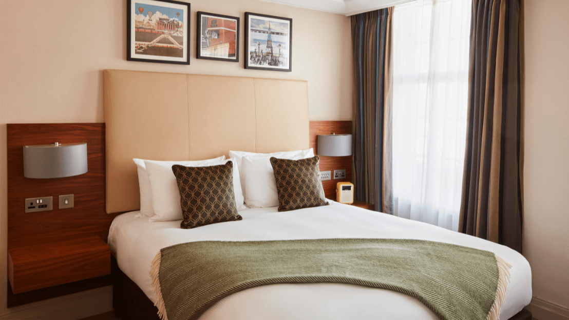Enjoy the retreat of the double bed and the convenience of the generously sized workstation. Whether you’re travelling alone or taking a romantic trip you’ll never forget, the Deluxe Double room at The Clermont London, Charing Cross, offers a slice of luxury in the heart of London.